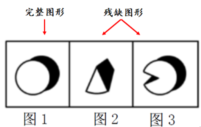 题干:给出一个完整图形及几个残缺图形(如下图所示)。