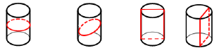 如上图所示,图1是圆柱体的俯视图,图2是圆柱体的主视图、左视图以及右视图。