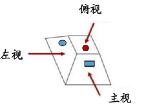 立体图形的三视图分为主视图(从正面看)、俯视图(从头顶向下看)以及左视图(从左侧看),如下图所示: