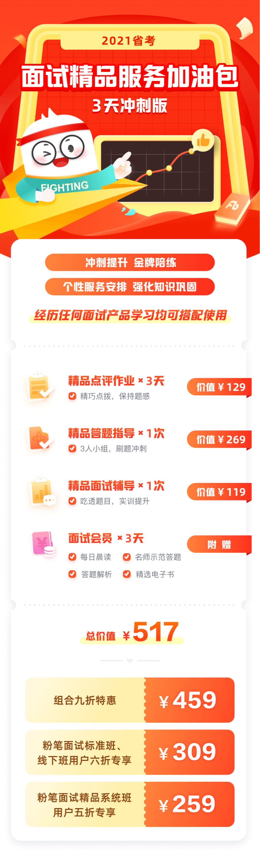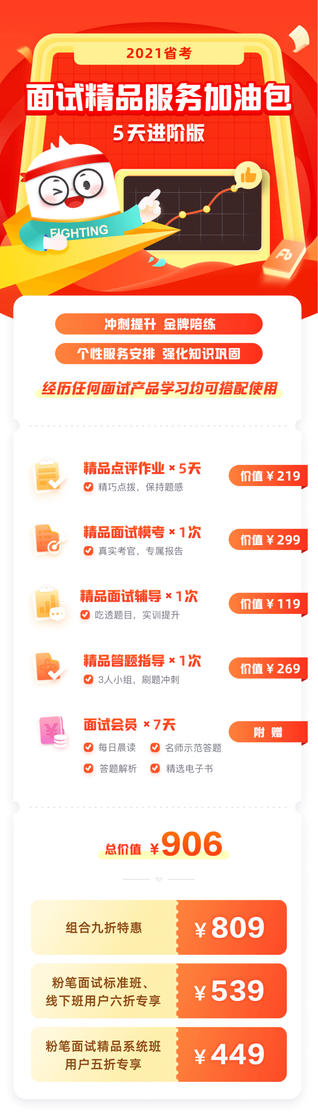 同时,面面也为大家准备了2021省考【面试精品服务加油包】,3天版 & 5天版两种时长随心选,让你练到考前,不断精进!