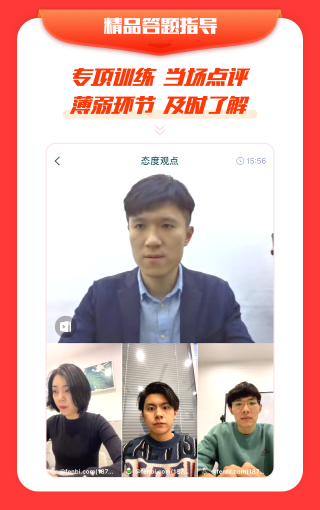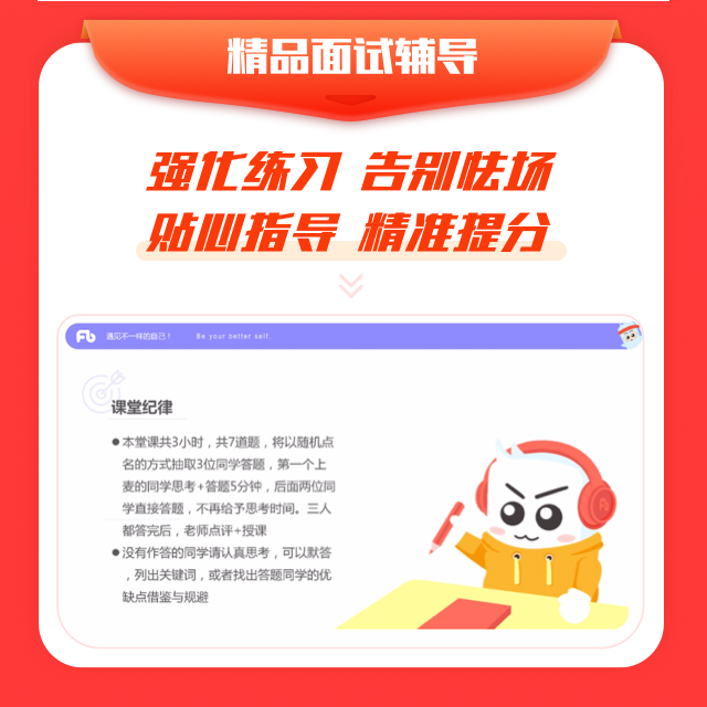 线上面试精品班里有很多服务,像课后的【精品答题指导】就不错。可以帮我克服一些线上练习的不真实感,去模拟一下考场的状态。老师也非常负责,每次都会说一些比较有针对性的问题,而不是那种流水账或者应付差事的回应。