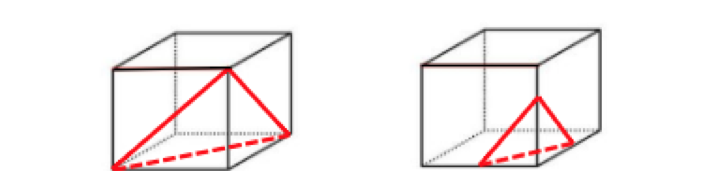 需要注意,六面体只能切出锐角三角形,无法切出直角、钝角三角形。