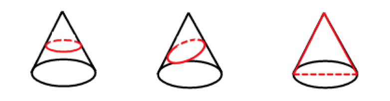 a.圆(横切);b.椭圆(斜切);c.三角形(竖切过顶点)