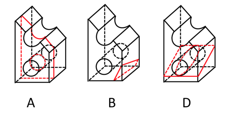 截面图与剖视图的区别要重点掌握,大多的考试题目考查的都是截面图,剖视图常作为迷惑项出现。