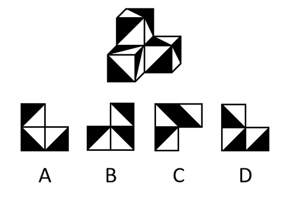 通过问题可直接判断题型为立体拼合,即选项与题干共同拼合成一个完整的正方体。