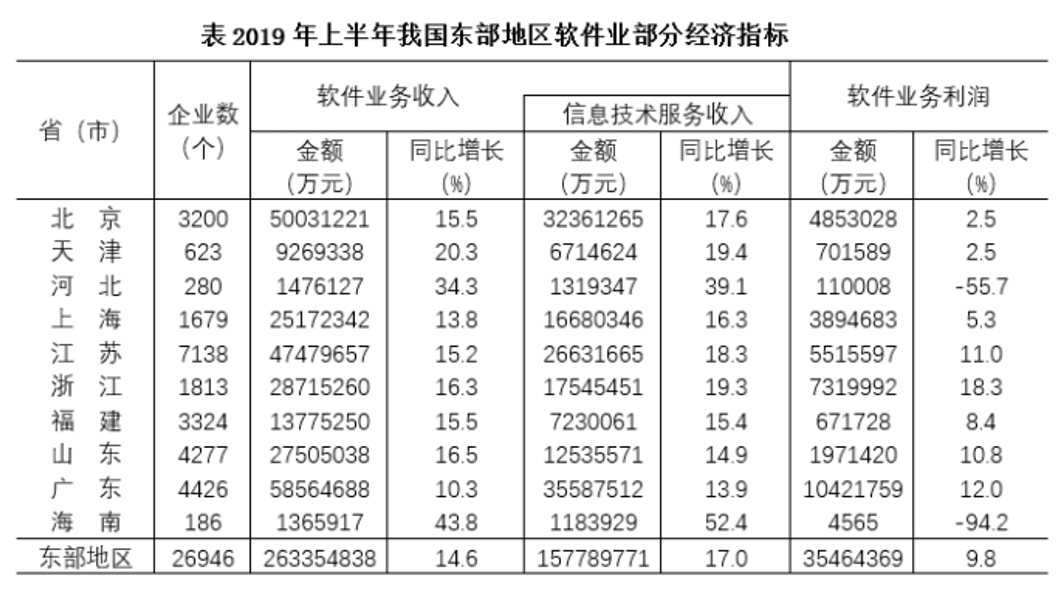东部地区各省(市)中,2019年上半年软件业务收入占地区软件业务总收入的比重同比提高的有( )。