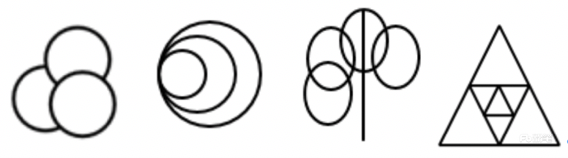 (3)轴与轴之间的关系:题干图形均为几个“等腰”图形拼合而成,分别画对称轴,看轴与轴之间的关系,如:重合、垂直、平行或者成一定角度。