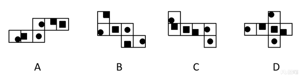 (2022国考)下列纸盒的外表面展开图中,哪项折叠成的纸盒和其他三个不一样?