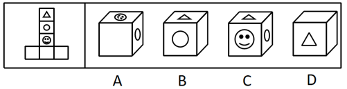 D项:展开图中三角形头顶所对的面是圆环,选项中三角形头顶所对的面为笑脸,选项与题干不一致,排除。